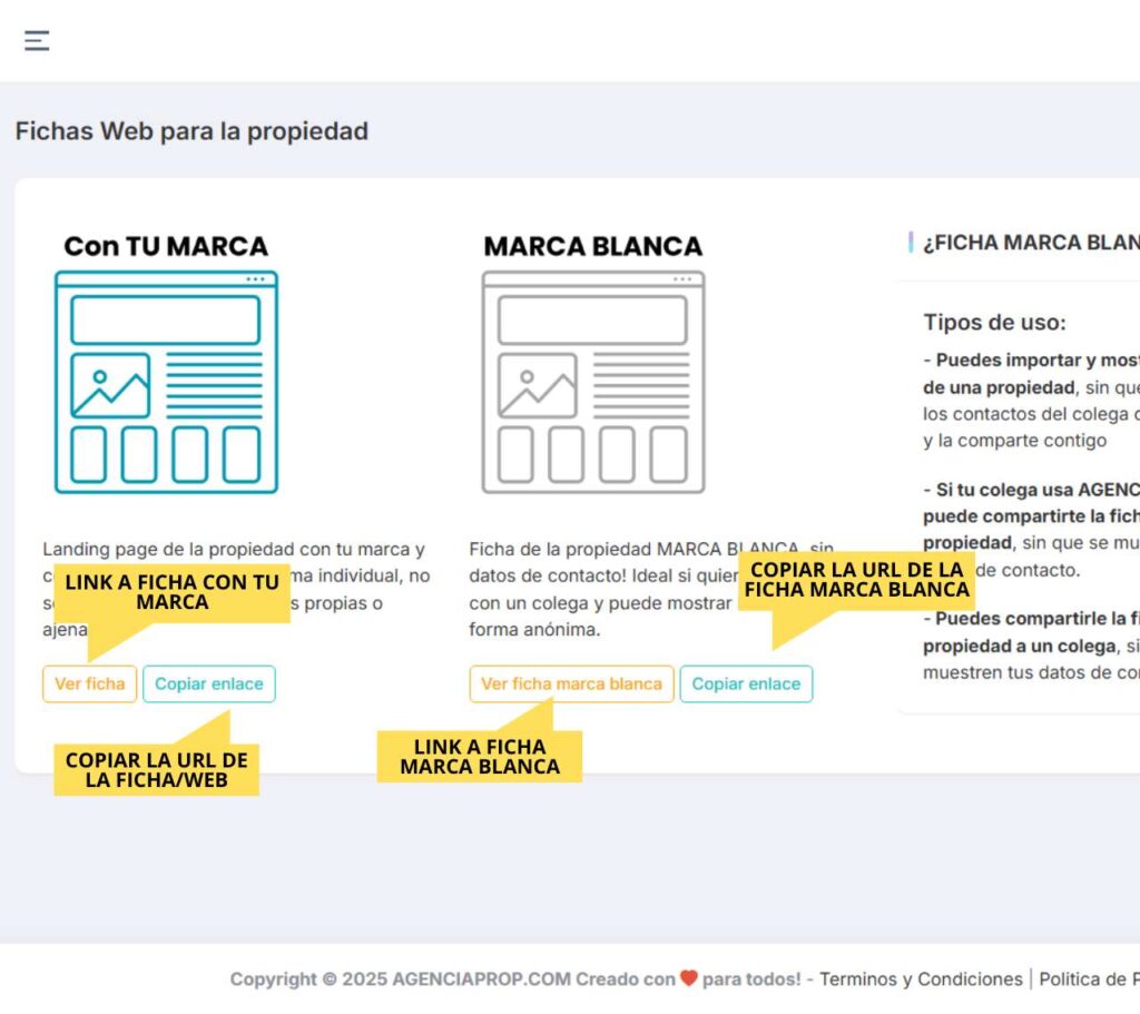 Con tu Marca: Uso tradicional, para compartir o hacer campañas en redes sociales. Se muestran los datos de la propiedad y de ti.